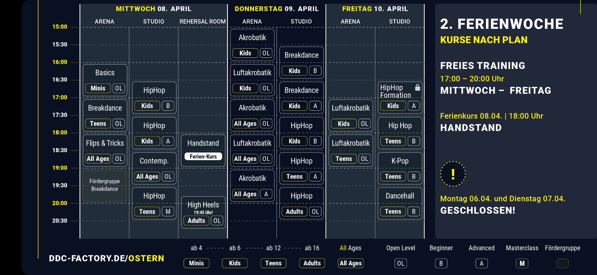 13.05 bis 03.06 (4-Wochen-Programm) - Ein Hauch von Weltklasse in der DDC Factory: Vlad vom Duo Prime ist nach Schweinfurt gezogen und gibt sein Wissen ab sofort bei uns weiter! Nutze die exklusive Chance, die Kunst des Handstands von einem echten Akrobatik-Weltmeister zu lernen.